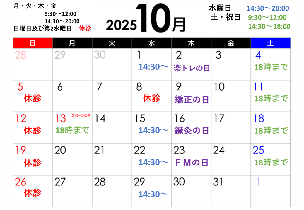 10月の診療日です!