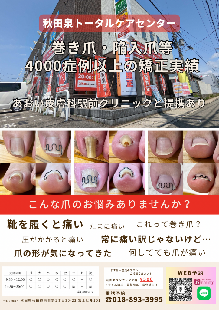 当院の巻き爪矯正は初診料0円、初回施術料1500円、2回目から施術料2500円で行っております!