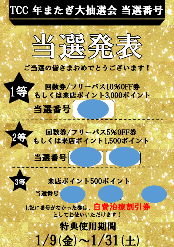 ※当選期間内にご来院が出来ない・当選しているか確認し忘れた場合当たり券も期間外になると自動的にはずれ券になりますので当たっていたらスタッフまでお声がけください!