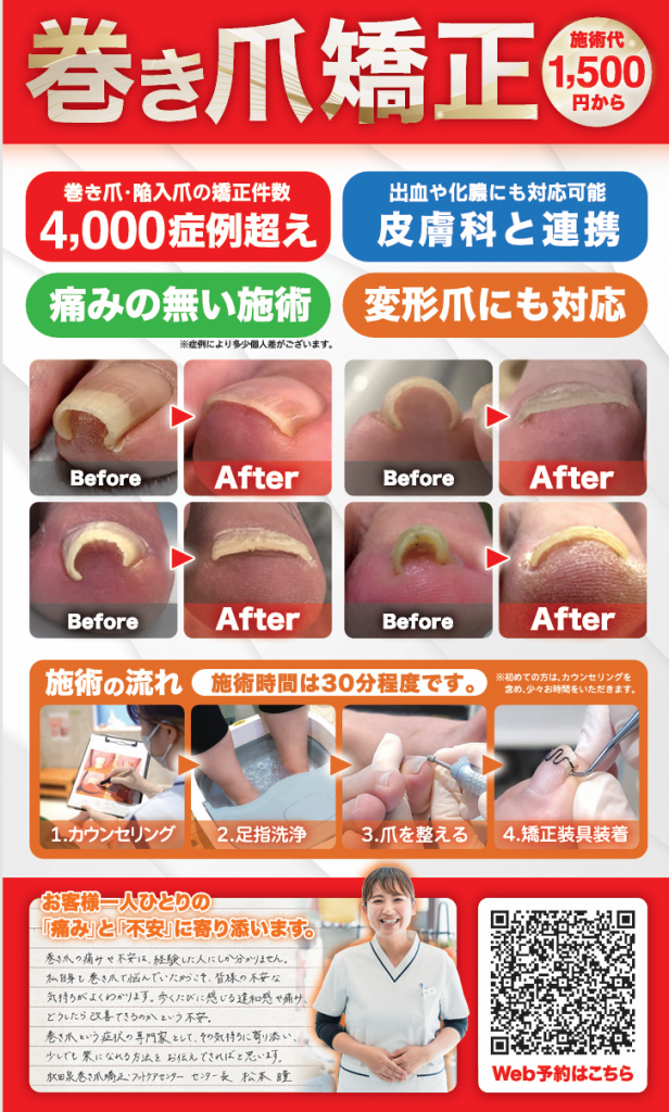 巻き爪は改善できる?秋田旭南巻き爪専門院よる巻き爪矯正