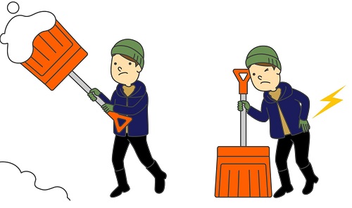 雪かきは腰の屈曲、回旋運動により腰の筋肉に過度に負担のかかる動きが多いです。