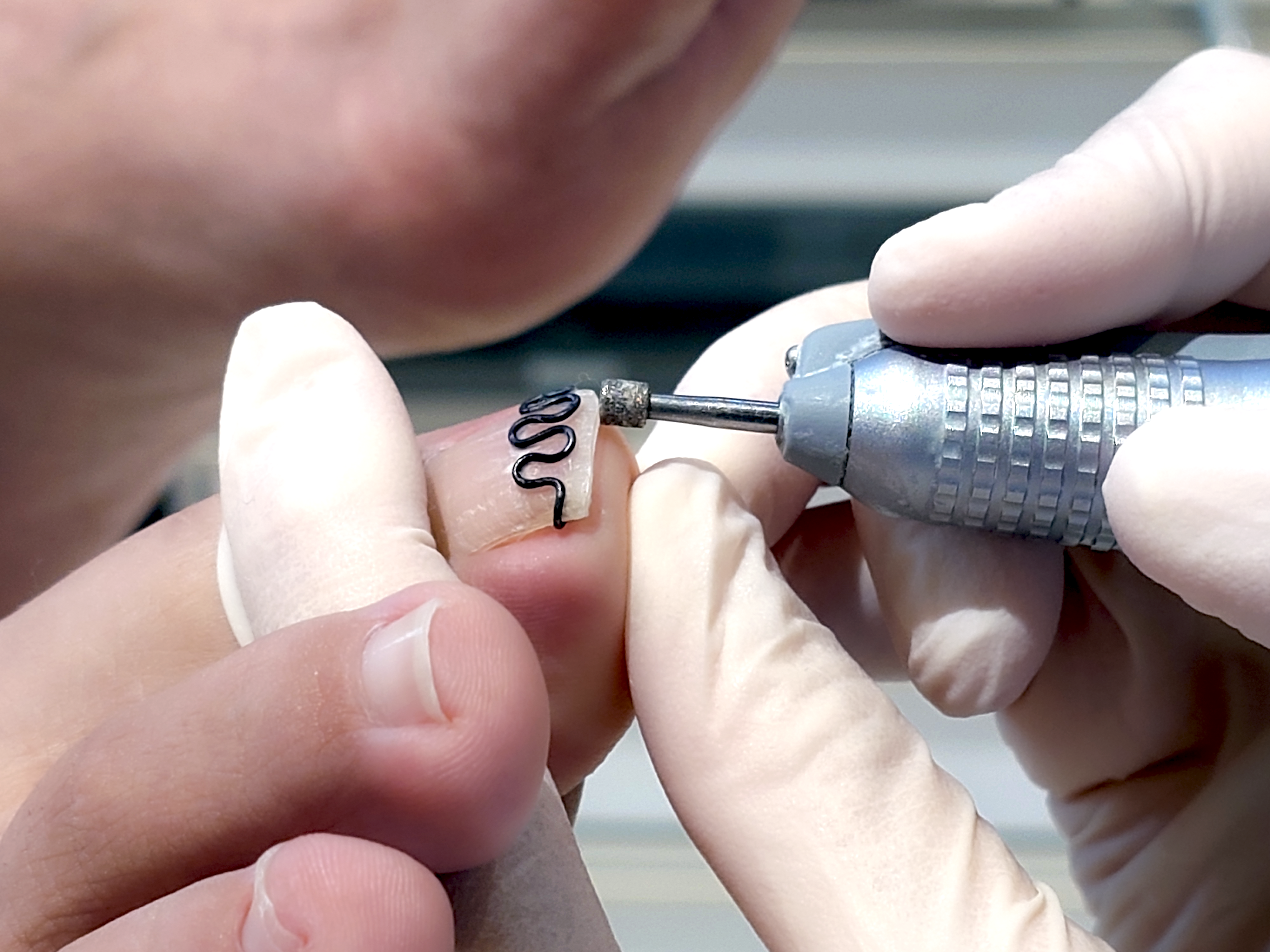 秋田旭南巻き爪矯正・フットケアセンターで行う巻き爪矯正は、足と爪の専門知識に基づいたケアです。爪の状態を丁寧に確認しながら、専用の矯正器具を使用し、爪のカーブを少しずつ整えていきます。