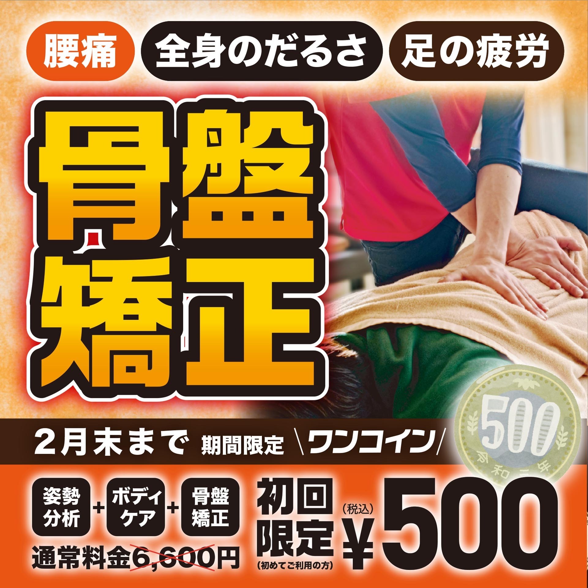 【2月限定クーポン】で「骨盤矯正」が¥6,600→¥500で受けられます!