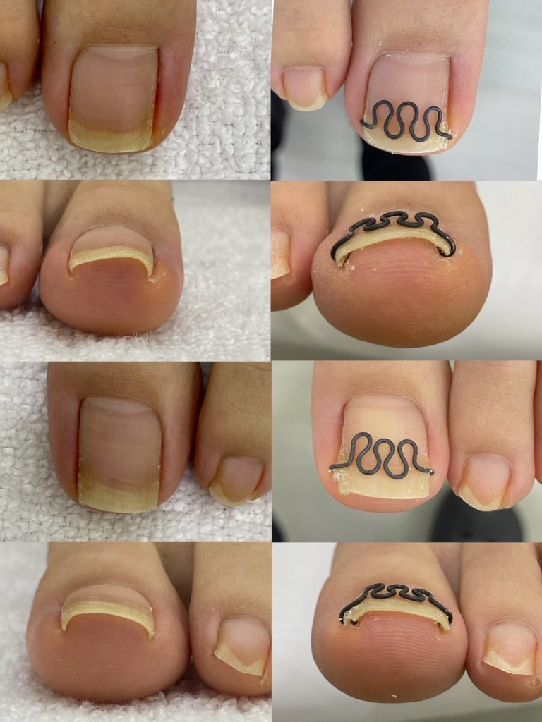 当院の巻き爪矯正は爪端は切らずに持ち上げて根元から矯正をします。