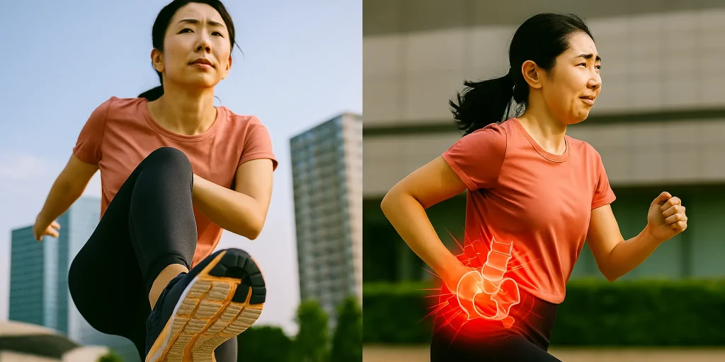 骨盤の歪み:ランニングは、左右の脚を交互に動かす運動です。この時、身体の土台である骨盤が歪んでいると、骨盤が左右に不必要に揺れたり、上半身が過度にねじれたりします。この歪みは、太ももの筋肉(大腿四頭筋やハムストリングス)や、お尻の筋肉(大殿筋・中殿筋)に不均衡な負荷をかけ、結果として膝関節の動きを不安定にさせます。この不安定さが、痛みを引き起こす直接的な原因となります。